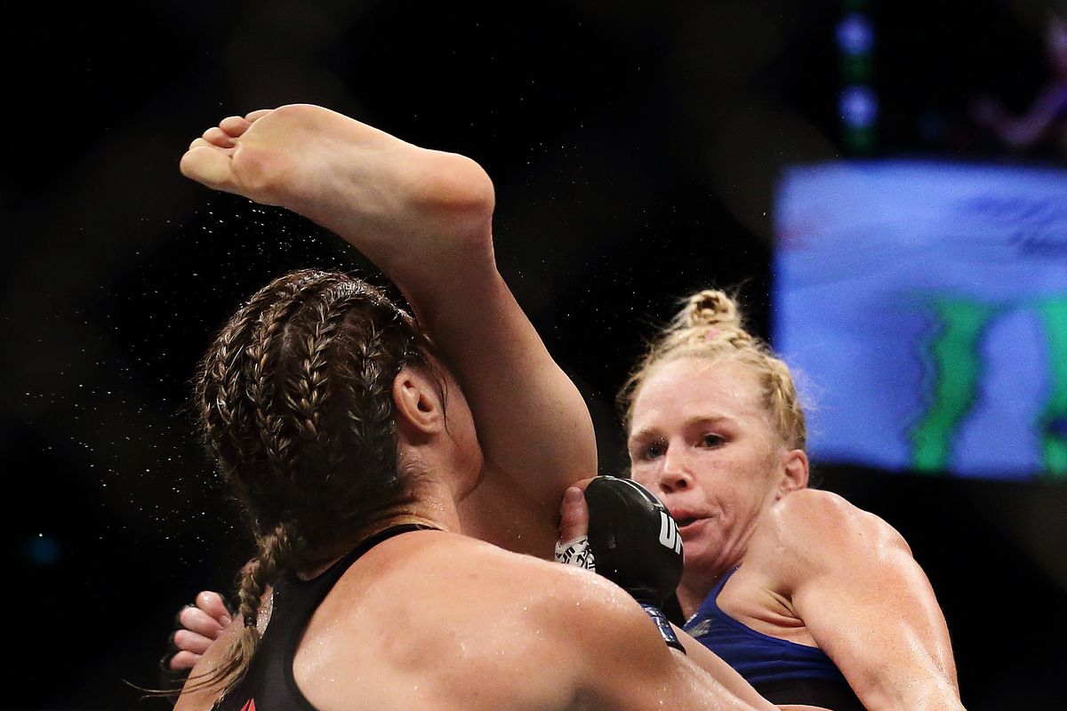 Holms awesome kick is kinda annoying as i dont rate her and it was being proven in front of everyone she wasnt all that, then she goes and does that perfect "?" kick to finish Betch.
