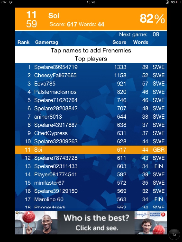 For a laugh i tried playing Wordament in another language. I picked Swedish (I know no Swedish). I came 11th out of 59 playing against Swedes.