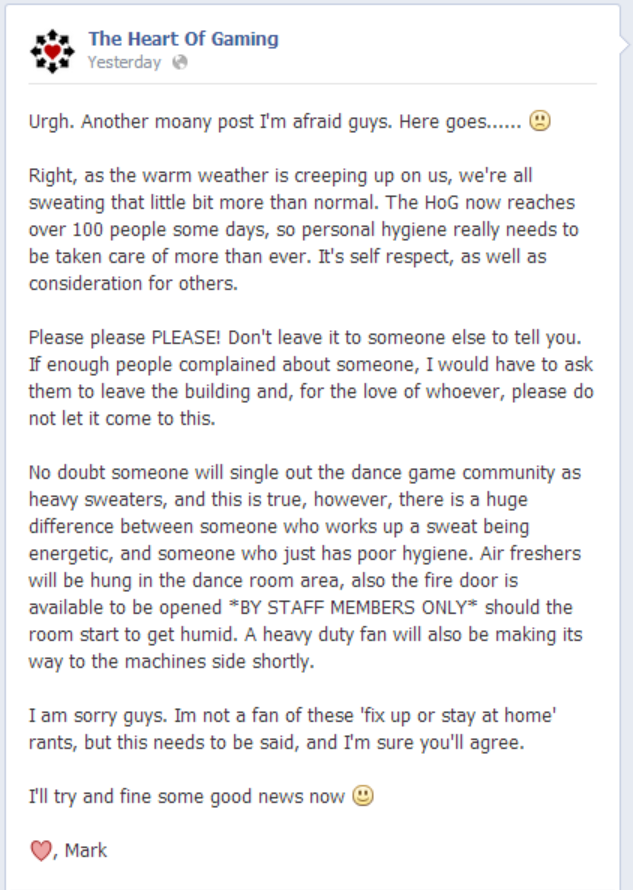 HoG has just issued a statement on Facebook warning people to sort out their hygiene. I'm on my phone so can't post it here.