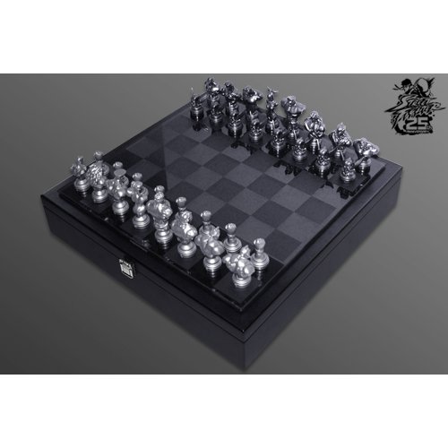 Roster includes Ryu & M. Bison (kings), Chun-Li & Juri (queens), Ken, Guile, Balrog & Vega (bishops), E. Honda, Blanka, Rolento & Akuma (knights), Dhalsim, Zangief, Sagat & Seth (rooks), Ryu's fist & Shadaloo winged skull (pawns)