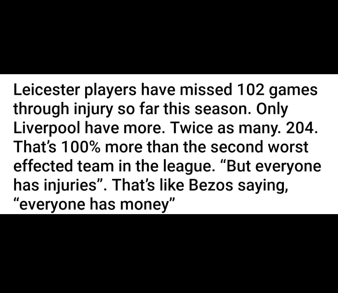 It’s frustrating but unsurprising there has recently been such a lazy dismissal of the injuries by some pundits who are paid well enough to research things better. Don’t think many Reds are disputing the presence of injuries, all teams obviously have them but rarely to such an extent. And certainly not at such a detriment to the overall shape, and playing style of the side. Man City fans blamed much of their malaise last season on ONE centre back missing. Yeah, that Man City, with their embarrassment of riches.