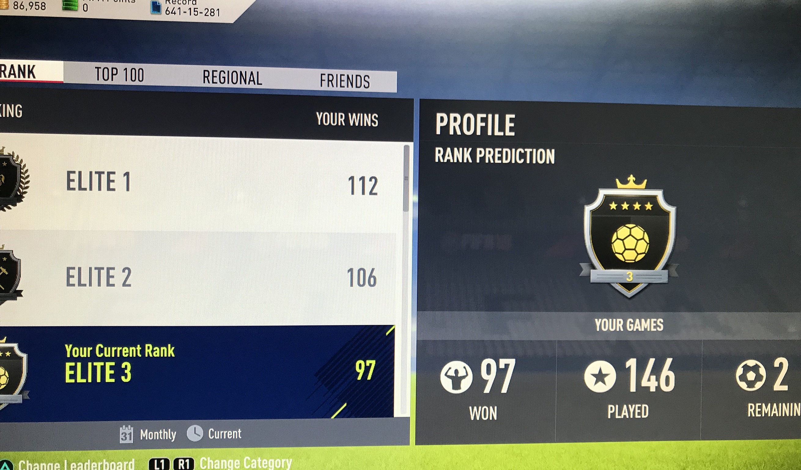 I was 19-4 and it went a bit tits up yesterday, I was playing good Fifa until the servers went down.