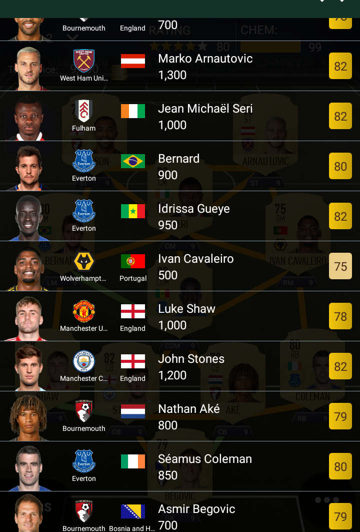 Work out the cheapest Buy it now price. (Arsenal defenders: Kolasnic currently goes for 750 coins)
