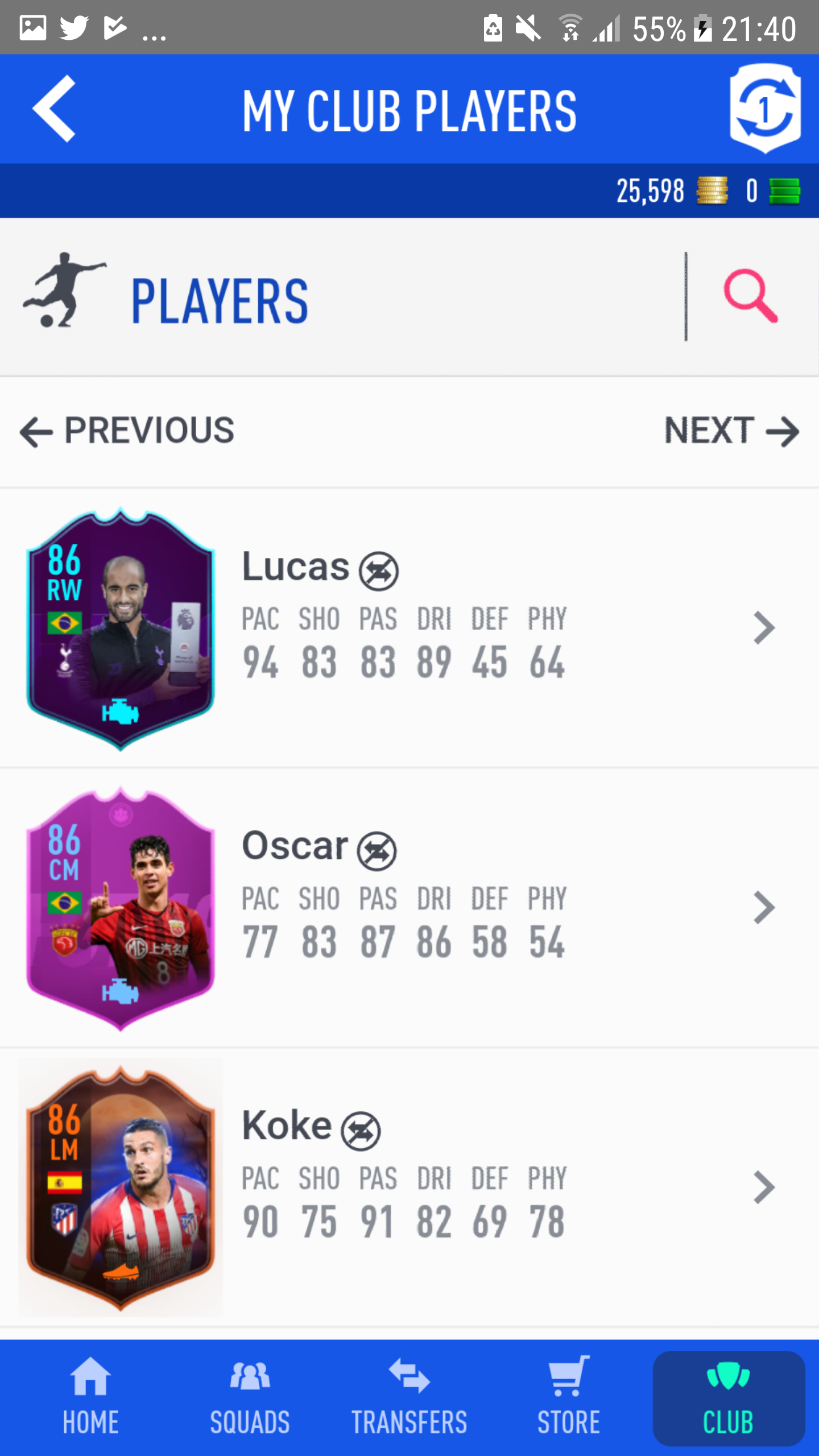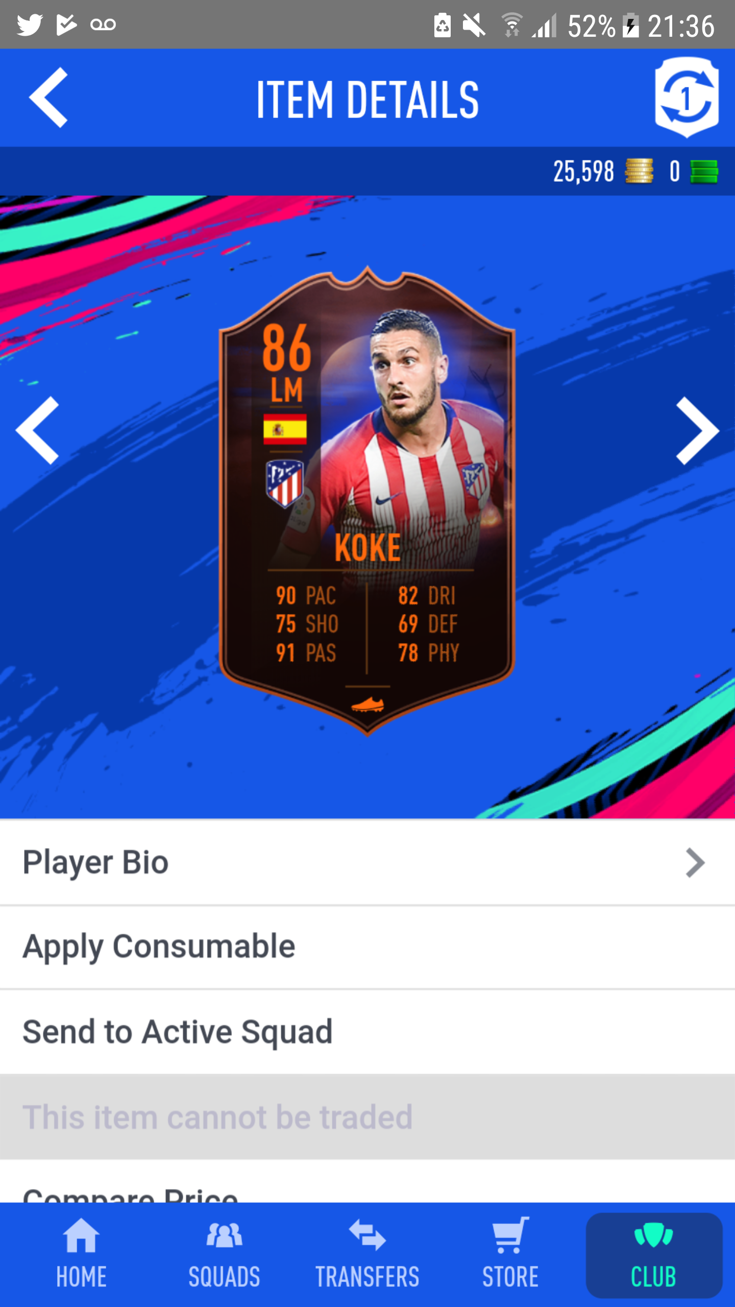 I have 52 83+ players on my transfer list but can't bring myself to part with them for Koke. Holding out for something better ideally in the Italian or English leagues.