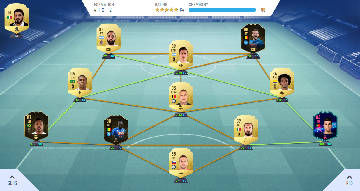 I've tried Dybala up front yeah, was't keen...this was '17 though.  Not tried Higs at CAM, but he scores so many in the air for me, he's so strong and good at heading, I need him as far forwards as possible!  I don't think the absolute unit would make many speedy runs into the box...have you played with thim there, or know anyone that does?