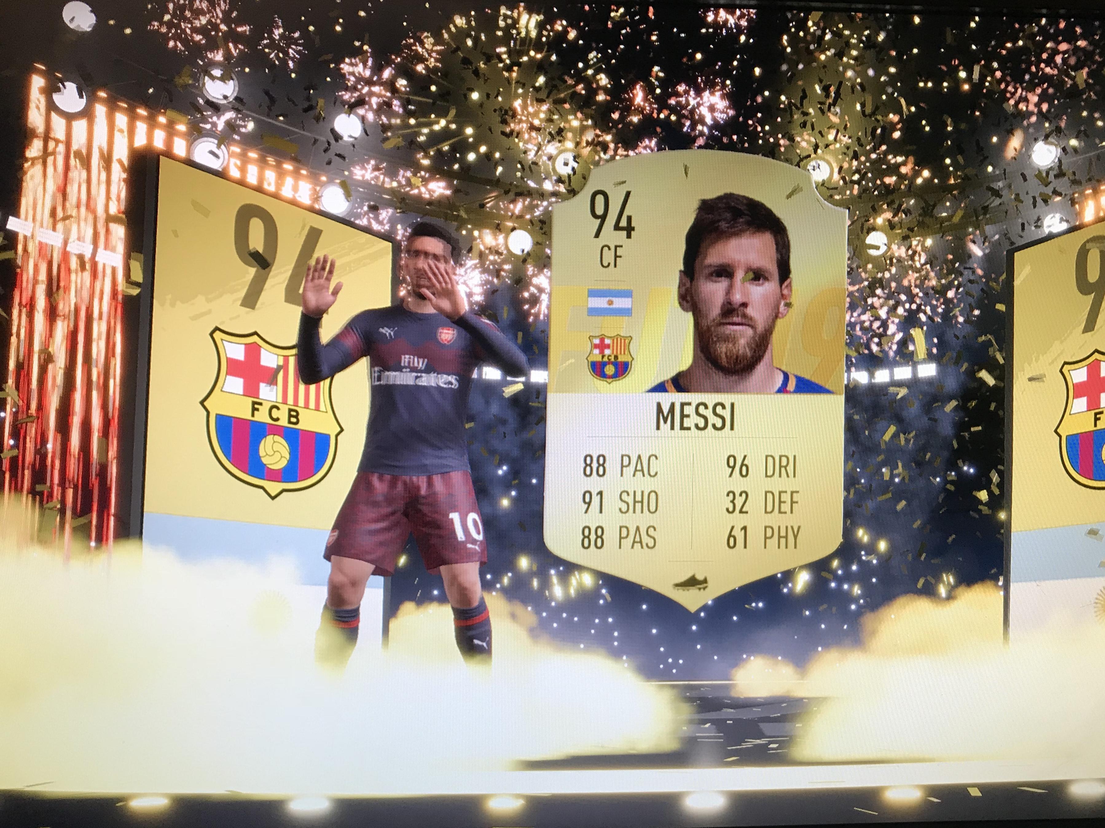 I’m curious as to how many actual packs it takes to get a Messi. Surely you didn’t just open a single 45k pack and out strolled Messi @gooner4life How many did you open before that? Even if you opened 40 packs that is still a ridiculously lucky pull.