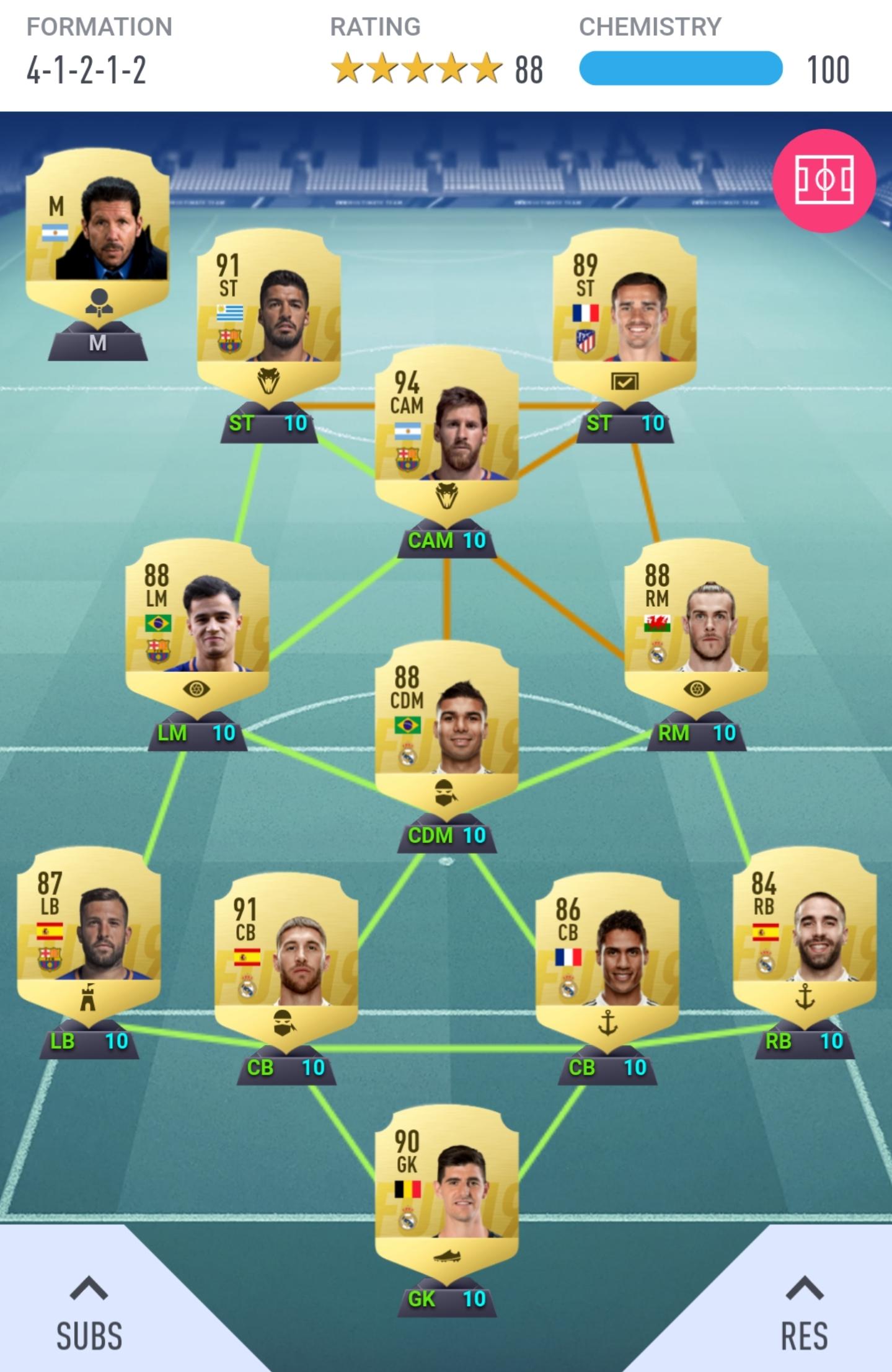 I've been idly pumping shite from my club through the various upgrade SBCs today, nothing of note came from it though. I'm pretty settled on my team now, unless I can find a suitable replacement for Oscar and go full Premier League (plus Gotze, Kimmich and Sancho). I might try Silva, then start saving for De Bruyne.
