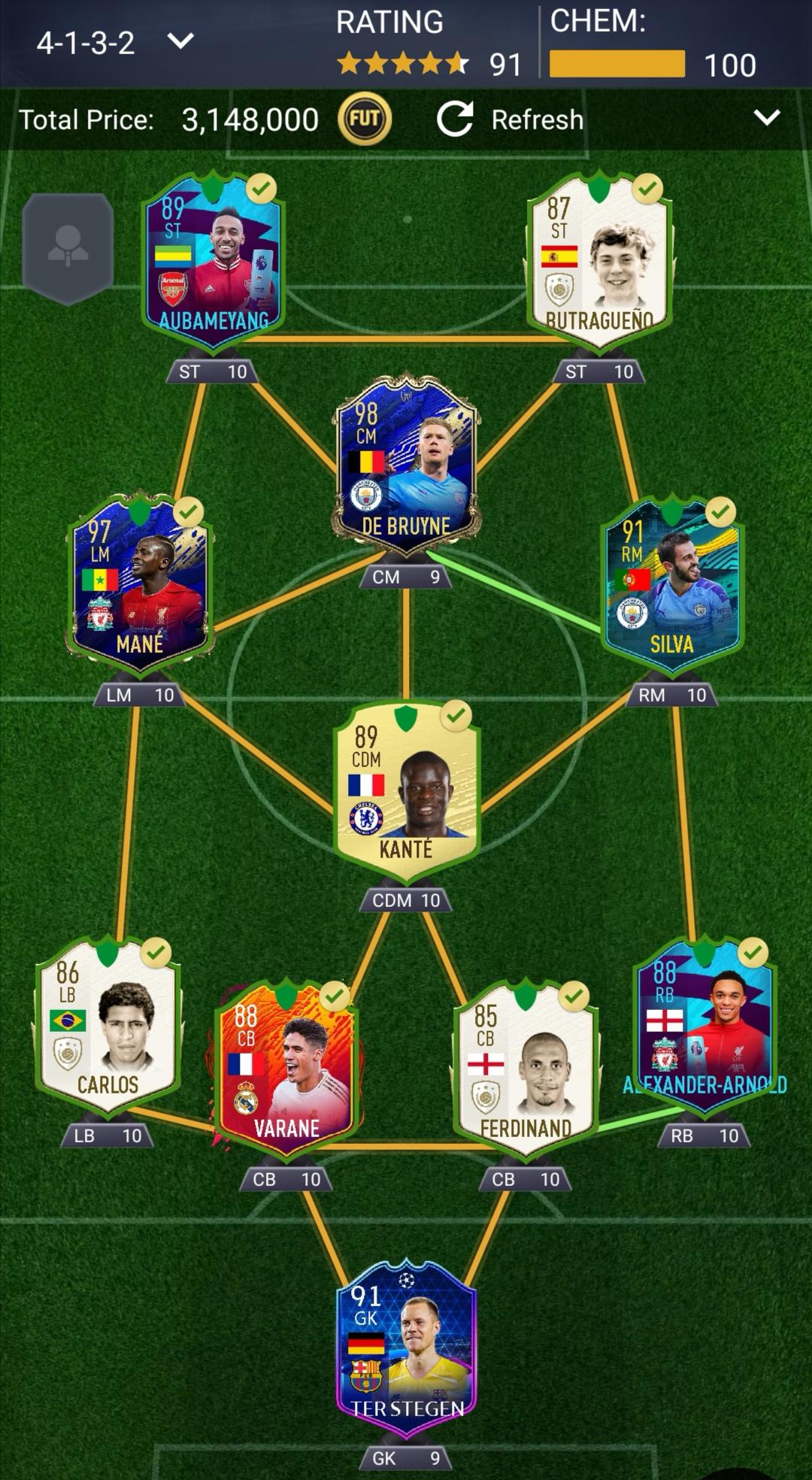Yeah Dinho got banked. I was looking at Eusabio, he was great for me in F19, but that was as a CAM and I'm really getting on well with 442. Packed 90 Dalglish a while ago and he was very good, I didnt see the point of holding him when I have Aubamy, then I got Buts in a Base Pack, so he goes up top as his prime was my fav player from F19 and still scores some absolute bangers as a Baby. Gulliet was something for me to stick my coins so I didnt waste them on the Ultimate packs that were calling me. And I've never used him before. Hes very good, but I dont have the skillz to utilise him to his full potential and I got him sooo cheap (4,450,000. Currently lowest bin is 4,680,000 and was nearly 4.8 last night) so will sell when I can make a couple of hundred thou and prob get 94 Zidane or Matty.