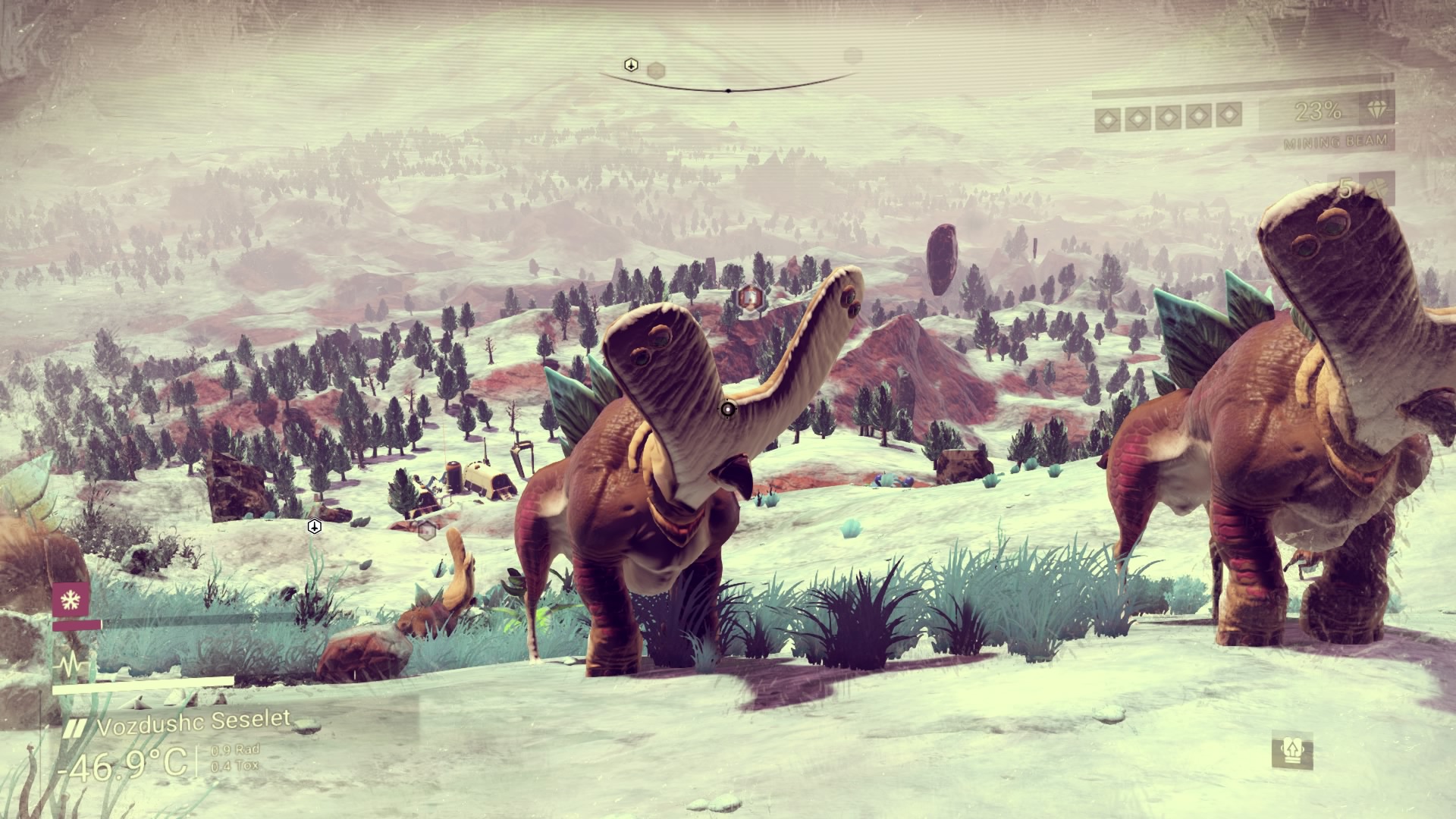 As I see the radar dish and landing pads of the settlement and my journeys goal, I see a crashed spaceship. The same type and colour of the one I stupidly bought, 2 mins walk from the trade station.