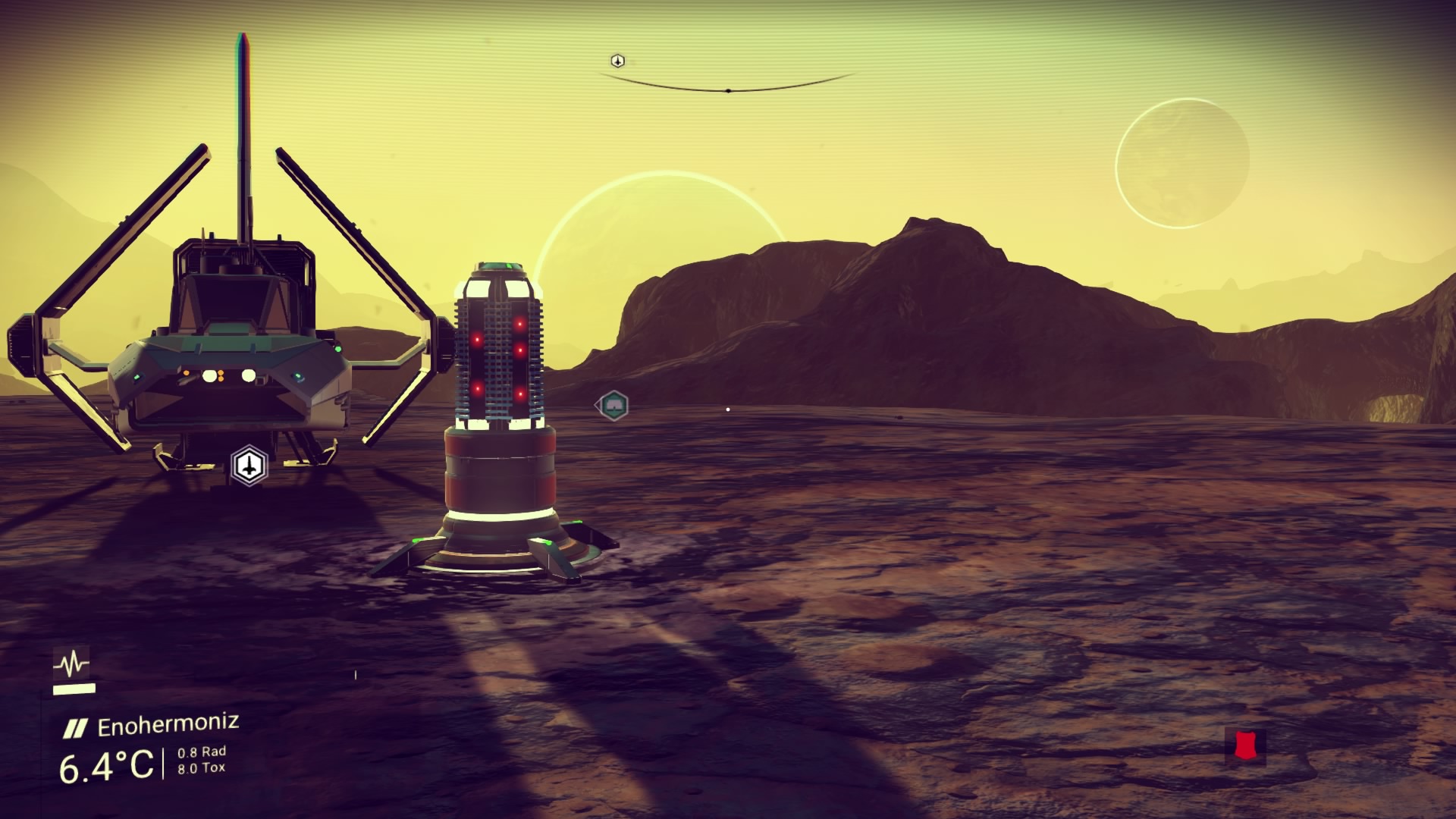 No zinc! Shit. Looks around the planet - imagine the Nevada Badlands but speckled with shards of plutonium. I then set off for an hours walk to a trading station that becomes one and a half hours of trudging due to the canyons and terrain.