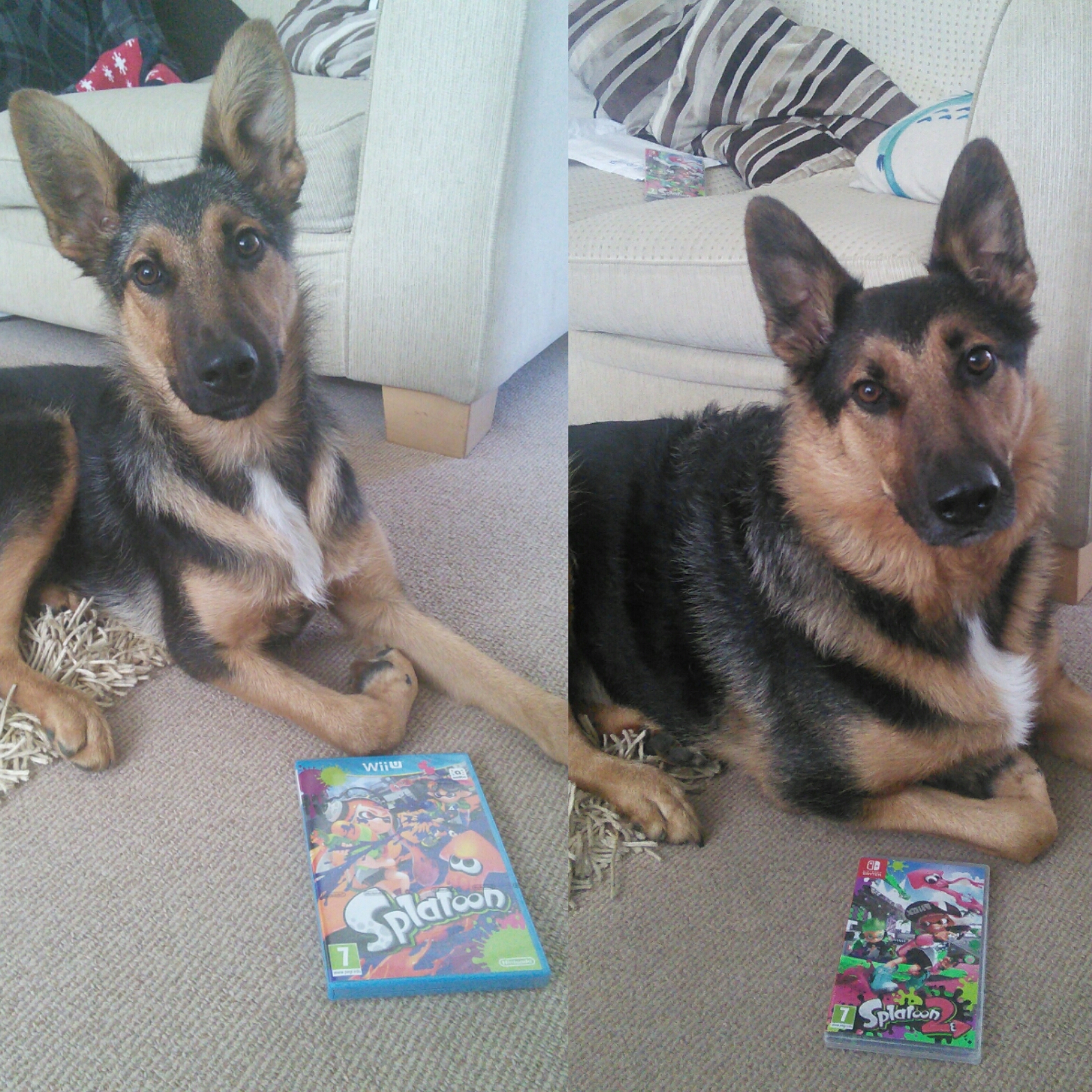 Not a new console photo but I did take comparison photos of my dog on the two Splatoon release days if that counts.