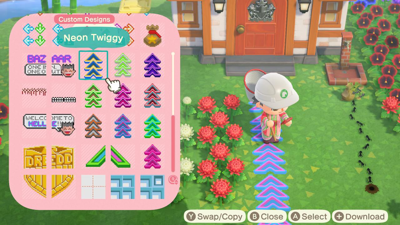 I've decided to make neon chevrons coordinated to each neighbours colour scheme to lead up to their house. Because I don't waste enough fucking time on this game already, apparently.