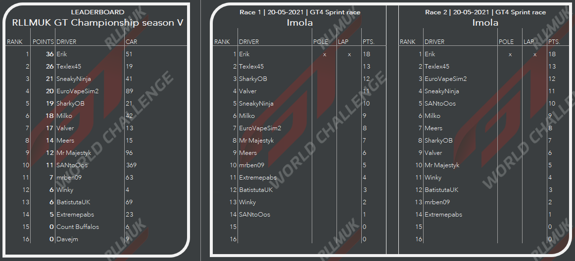 Thanks again everyone for the great racing, had some good battles in the first race and an unfortunate contact on the penultimate corner on the last lap.