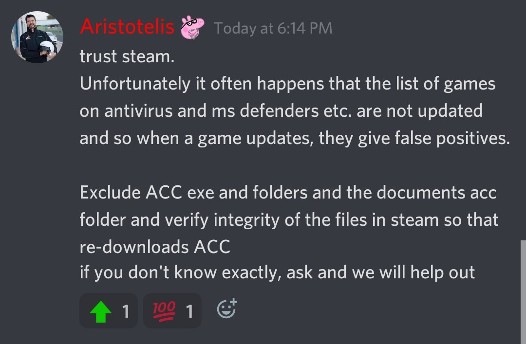 There's a new ACC update out. It looks like it fixed the trojan issue I got during the race on Thursday.