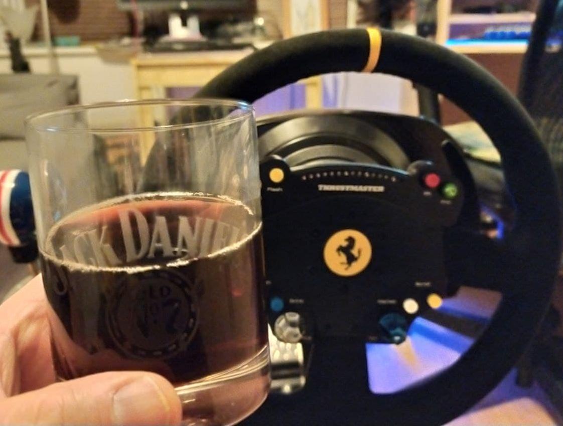 Had a really fun battle with @Count Buffalos in the second race, I just couldn't get the traction down out of any corners to overtake so tried some mind games which paid off into ascari and due to the date @SharkyOB had with the wall a few corners earlier and daves misery in T1 I found myself in first place,  I was making a couple silly mistakes and I was sure I would be caught by the shark closing up behind me. I could hear the jaws theme in my head, again I got lucky and the gap opened behind me so I tried take it easy the last few minutes of racing, had a couple wobbles but kept my cool and took my first win. Absolutely chuffed with tonight's races.
