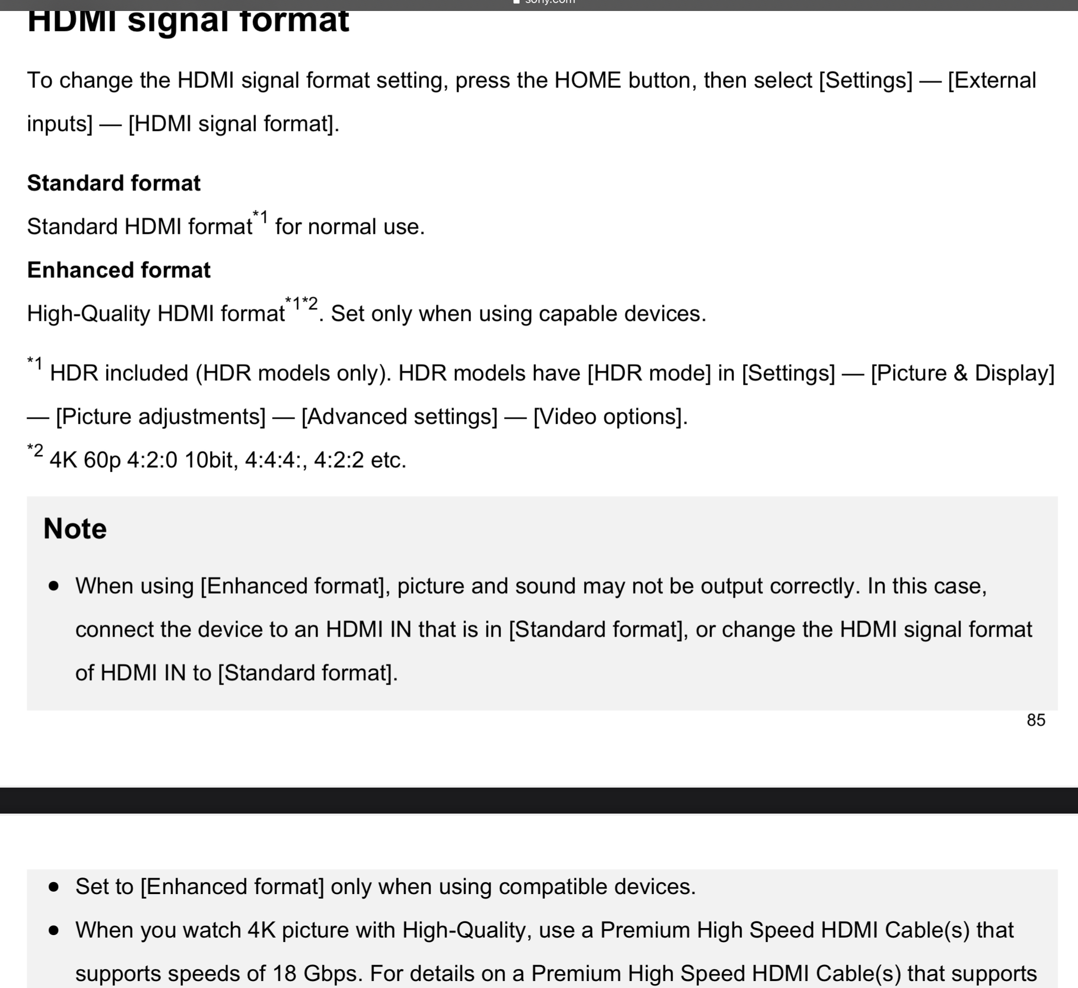 it does in certain ports, run in 4K hdr, but mentions that it’s using one sort of hdr and not another due to bandwidth or something?